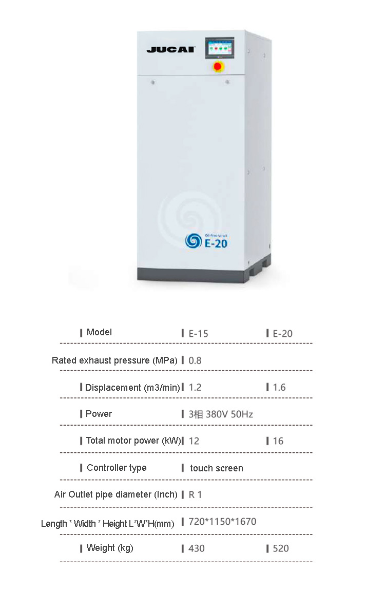 Product name:16kW 1.6m3/min Oil-free scroll air compressor E-20 Silent food and beverage medical laboratory air compressor
