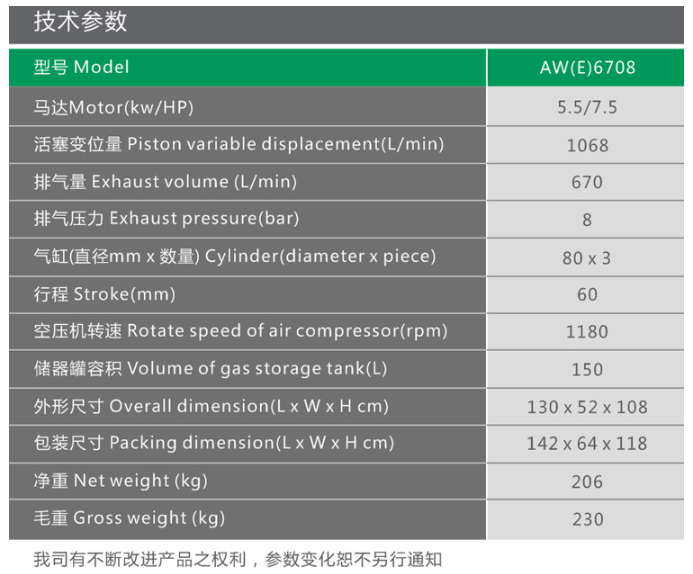 標(biāo)題:5.5kW/7.5HP 新型節(jié)能環(huán)保活塞空壓機(jī) AW6708