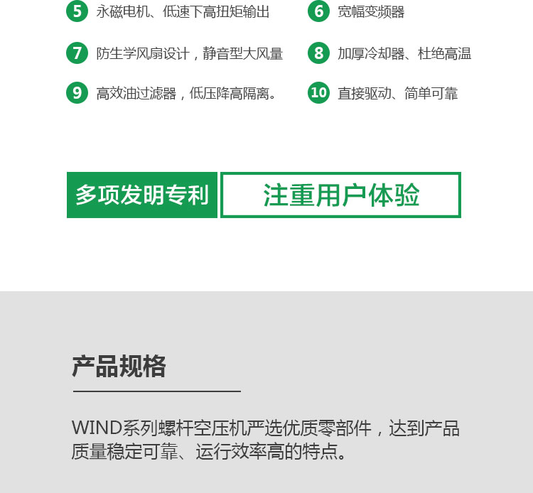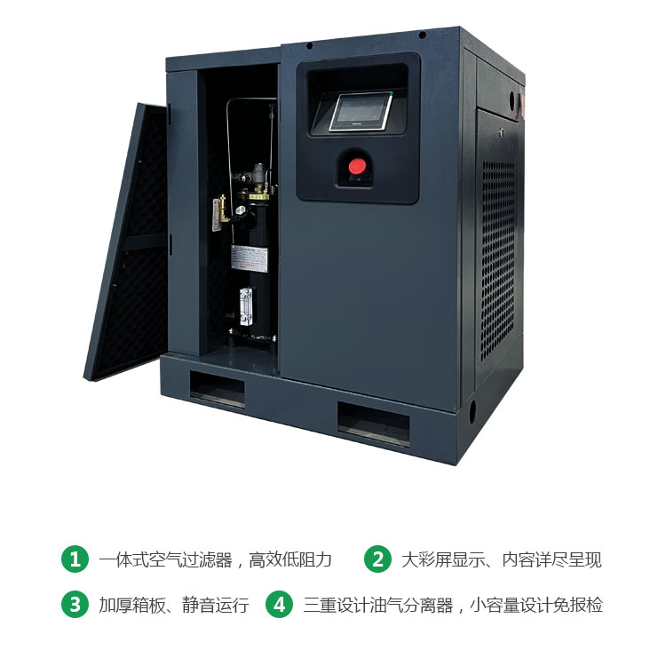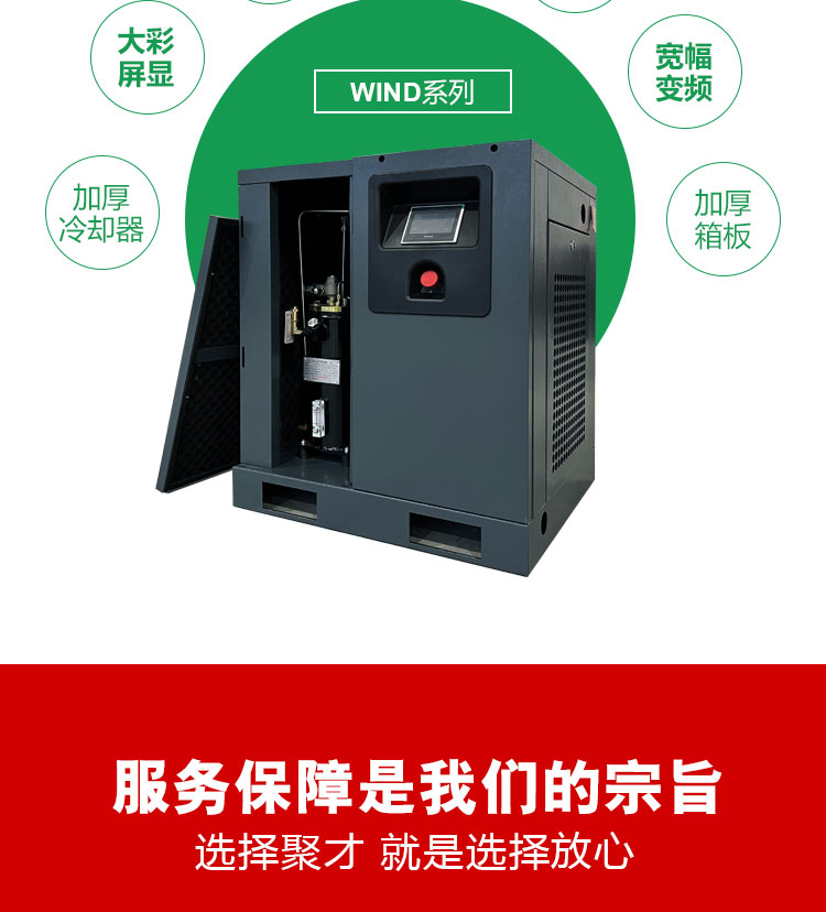節能靜音, 強勁穩定,永磁電機,加厚冷卻器,大彩屏顯,一體軸聯結構主機