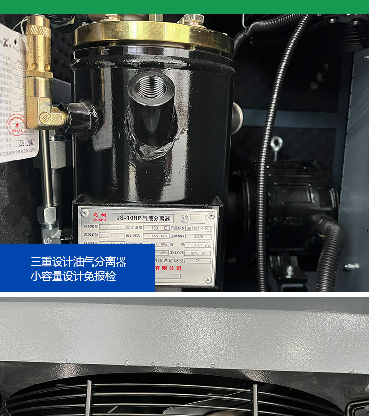 中排氣含油量。耐高壓,耐高溫油桶,加上高質量烤漆,美觀實用。