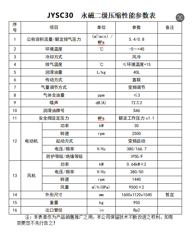 產(chǎn)品名稱:30kW 水平雙級(jí)直連永磁變頻空壓機(jī) JYSC30