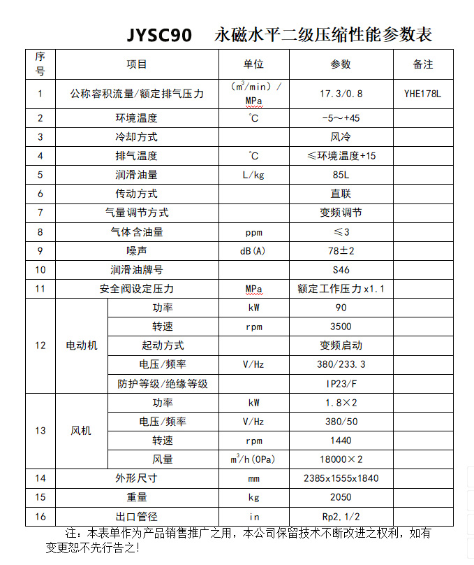 產品名稱:90kW 水平雙級直連永磁變頻空壓機 JYSC90